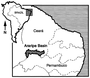 Время и место существованияСуществовали раколеписы в начале мелового периода, около 113 – 100,5 миллиона лет назад (альбский ярус). Были распространены на территории современной Бразилии.![]() Реконструкция внешнего облика раколеписа из работы Джона Мэйси и Марии Карвалью ("First records of fossil sergestid decapods and fossil brachyuran crab larvae (Arthropoda, Crustacea): with remarks on some supposed palaemonid fossils, from the Santana Formation (Aptian-Albian, NE Brazil)", 1995 год). Рядом изображена основная пища – мелкие ракообразные. Виды и история обнаруженияНыне общепризнан единственный вид – Rhacolepis buccalis, соответственно являющийся типовым. Ископаемые остатки были обнаружены на северо-востоке Бразилии. Породы относятся к раннемеловой формации Сантана, входящую в более крупное образование – Бассейн Арарипе.![]() На карте показано место обнаружения доисторической лучепёрой рыбы. Описание раколепису в 1841 году дал швейцарский естествоиспытатель Жан Луи Агассис. В начале статьи мы объяснили родовое название раколеписа. Видовое имя buccalis переводится с латинского как "щёчный". Строение телаДлина тела раколеписа достигала 25 см. Высота же до 6 см. Весил он до 350 граммов.![]() Характеризуется обтекаемым веретенообразным телом и заострённым рылом. Обладал достаточно большим ртом и острыми зубами, необходимыми для регулярной охоты. Скелет раколеписаНа фото представлен экспонат вида Rhacolepis buccalis из музея Натуралис (г. Лейден, Нидерланды).![]() Ниже графическая реконструкция скелета из работы американского палеонтолога Глории Арратии ("The varasichthyid and other crossognathiform fishes, and the Break-up of Pangaea", 2008 год).