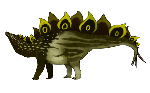 Время и место существованияСуществовали гипсирофы в конце юрского периода мезозойской эры, около 152,1 – 146,8 миллионов лет назад (титонский ярус). Были распространены на территории Соединённых Штатов Америки, в штате Колорадо.[4] Гипсироф — второй открытый в Северной Америке стегозавр. Более того, входит в десятку первых открытых стегозавров.![]() Английский художник Джек Вуд взял на себя смелость изобразить пластинчатого ящера таковым. Виды и история обнаруженияНыне известен единственный вид – Hypsirhophus discurus, соответственно являющийся типовым.В 1878 году охотник за окаменелостями Орамель Лукас, работающий по заданию знаменитого американского палеонтолога Эдварда Дринкера Копа, раскапывает в местонахождении Карьер Копа 3 (территория Гарден Парк, неподалёку от маленького городка Канон-Сити, штат Колорадо, Соединённые Штаты Америки) окаменелые фрагменты неизвестного животного. Породы ныне относятся к стратиграфической формации Моррисон (титон). ![]() На карте отмечено место находки гипсирофа.[2] В том же году Эдвард Коп публикует небольшую заметку в журнале "The American Naturalist", где присваивает ящеру название Hypsirhophus discurus.[1] В начале статьи мы объяснили родовое название динозавра. Видовое имя "discurus" на латинском означает "бегающий туда и обратно". Голотип и единственный экземпляр гипсирофа получил ярлык AMNH 5731. Он включает частичный спинной позвонок, фрагмент ребра, и четыре частичных хвостовых позвонка. Как показали дальнейшие исследования, бедренная кость, изначально приписываемая Копом той же особи, принадлежала неидентифицированному тероподу.[4] С тех пор новых фоссилий обнаружено не было. Hypsirhophus seeleyanusВ краткой заметке 1879 года Эдвард Коп представляет новый вид гипсирофа (Hypsirhophus seeleyanus), материал которого включает дистальный конец бедренной кости, спинной и хвостовой позвонки. Предположительно, он был раскопан тоже в Колорадо. Но, к огромному сожалению, до наших дней не сохранилось ни упоминаемых окаменелостей, ни даже их изображений, и потому сейчас таксон Hypsirhophus seeleyanus считается неподтверждённым (nomen nudum).[4]Строение телаДлина гипсирофа достигала ориентировочно 7 метров. Высота же до 3,5 метров. Весил он приблизительно до 3 тонн.![]() Сравнительные размеры динозавра (человек 1,8 м). К сожалению, обнаруженные окаменелости крайне фрагментарны, сохранилось лишь несколько костей. По ним невозможно восстановить достоверный облик ящера. Не раскопано даже ни одного хвостового шипа или спинной пластины. Можно лишь строить предположения на основе близких родов, в первую очередь стегозавра (Stegosaurus) и гесперозавра (Hesperosaurus). Передвигался колорадский динозавр на четырёх конечностях, задние из которых были заметно длиннее передних. Учитывая предполагаемые размеры, гипсироф вряд ли отличался высокими скоростями, как и его "стегозавровые соседи" по формации Моррисон. Скорее всего, туловище позднеюрского стегозаврида было достаточно массивным и обтекаемым. Традиционно для пластинчатых ящеров оно завершалось хвостом с тагомайзером на конце. В целом гипсироф пока представляет собой откровенную загадку. Скелет гипсирофа![]() Голотип Hypsirhophus discurus (AMNH 5731) из статьи Кеннета Карпентера. Спинной позвонок спереди (A) и сбоку (B). Остистый отросток хвостового позвонка (C). Автор сравнивает поперечное сечение дуги позвонка Hypsirhophus discurus (D) и Stegosaurus stenops (E), находя различи